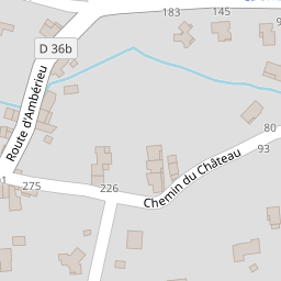 | 275 | 01500 | CHEMIN DU CHATEAU | DOUVRES | 883420.3 | 6545899.9 | 5.369 | 45.98 |
